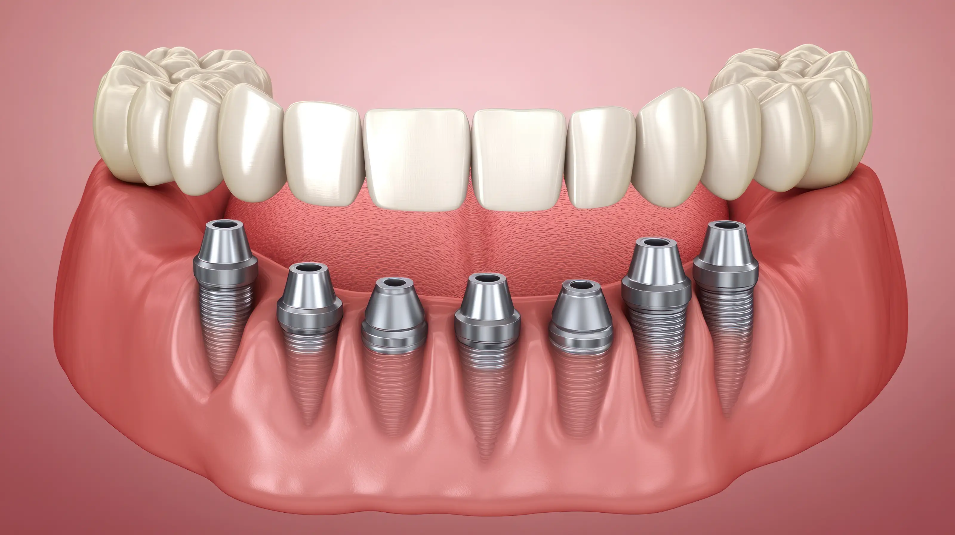 Once the implants are ready, we secure the bridge with precision screws — creating a fully fixed, permanent smile.